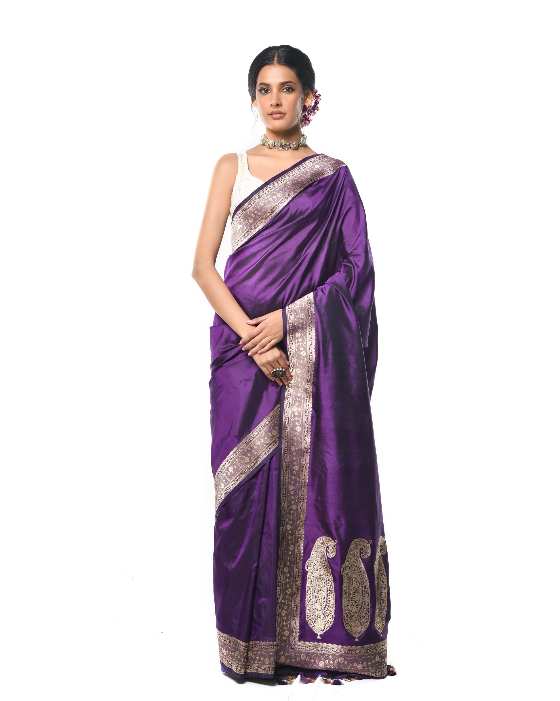 Every saree is meticulously crafted by skilled artisans across India, celebrating centuries-old weaving traditions.