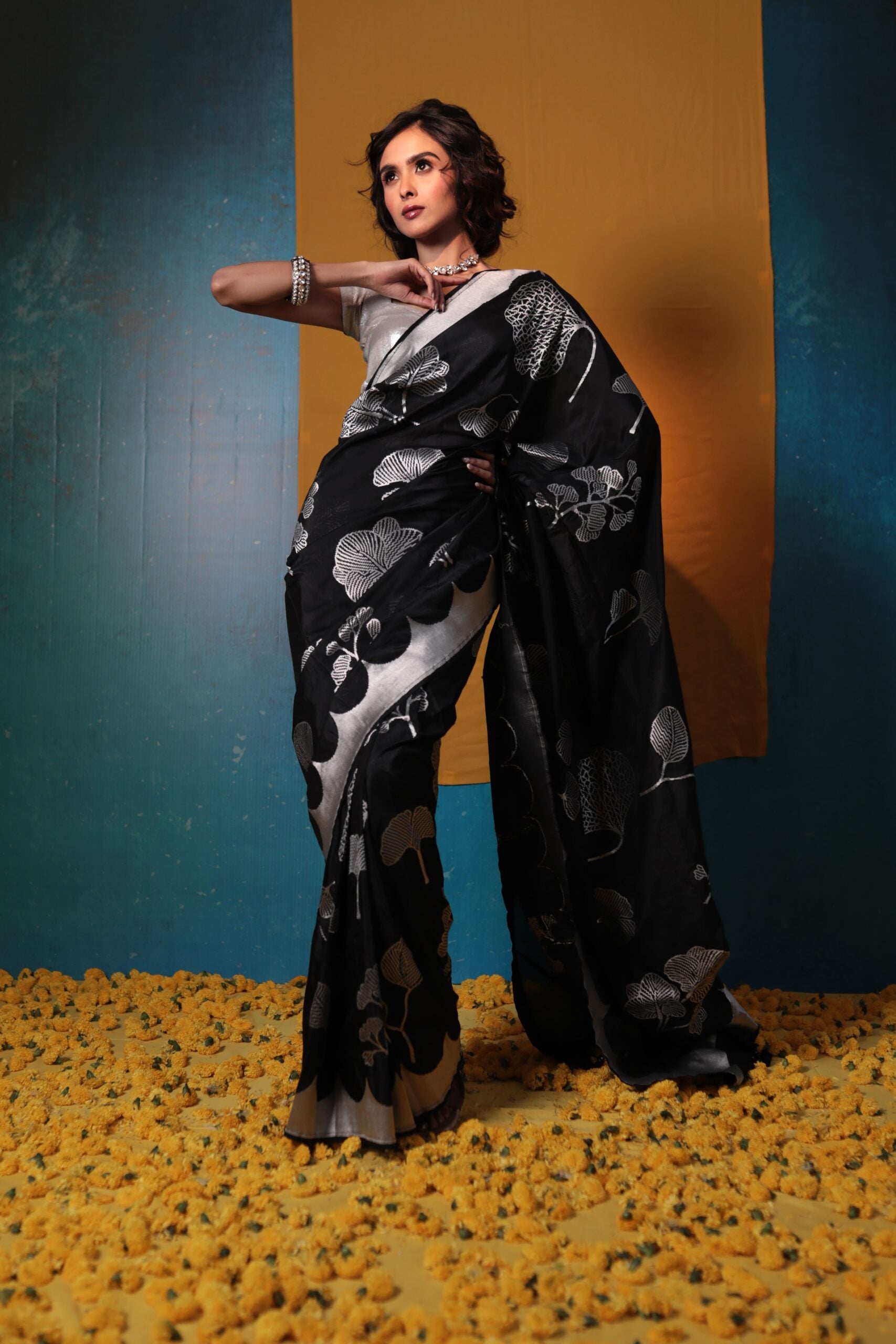 Every saree is meticulously crafted by skilled artisans across India, celebrating centuries-old weaving traditions.