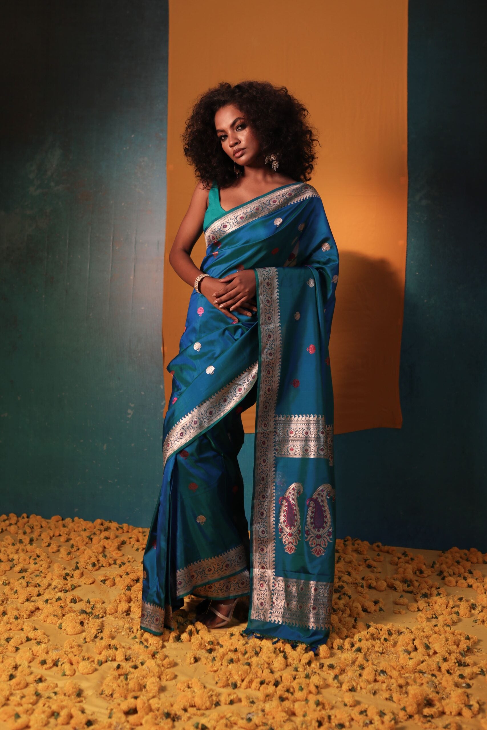 Every saree is meticulously crafted by skilled artisans across India, celebrating centuries-old weaving traditions.
