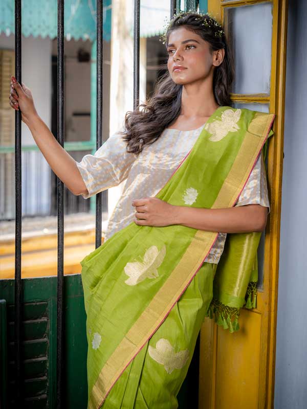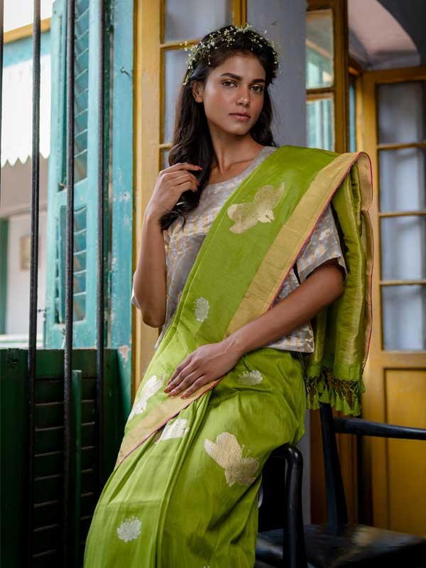 Every saree is meticulously crafted by skilled artisans across India, celebrating centuries-old weaving traditions.